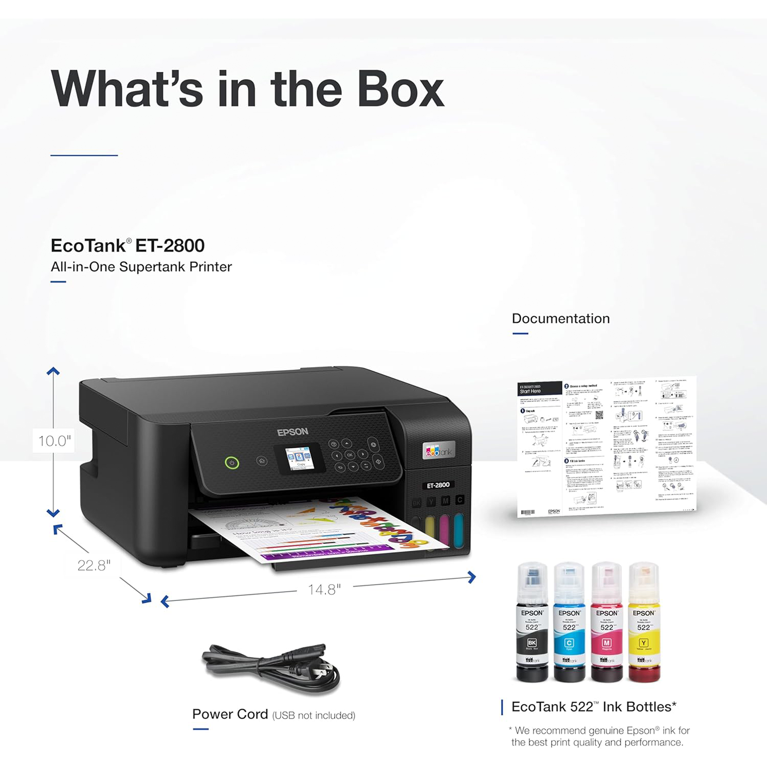 Epson EcoTank ET-2800 Wireless Color All-in-One Cartridge-Free Supertank with Scan and Copy, The Ideal Basic Home Printer