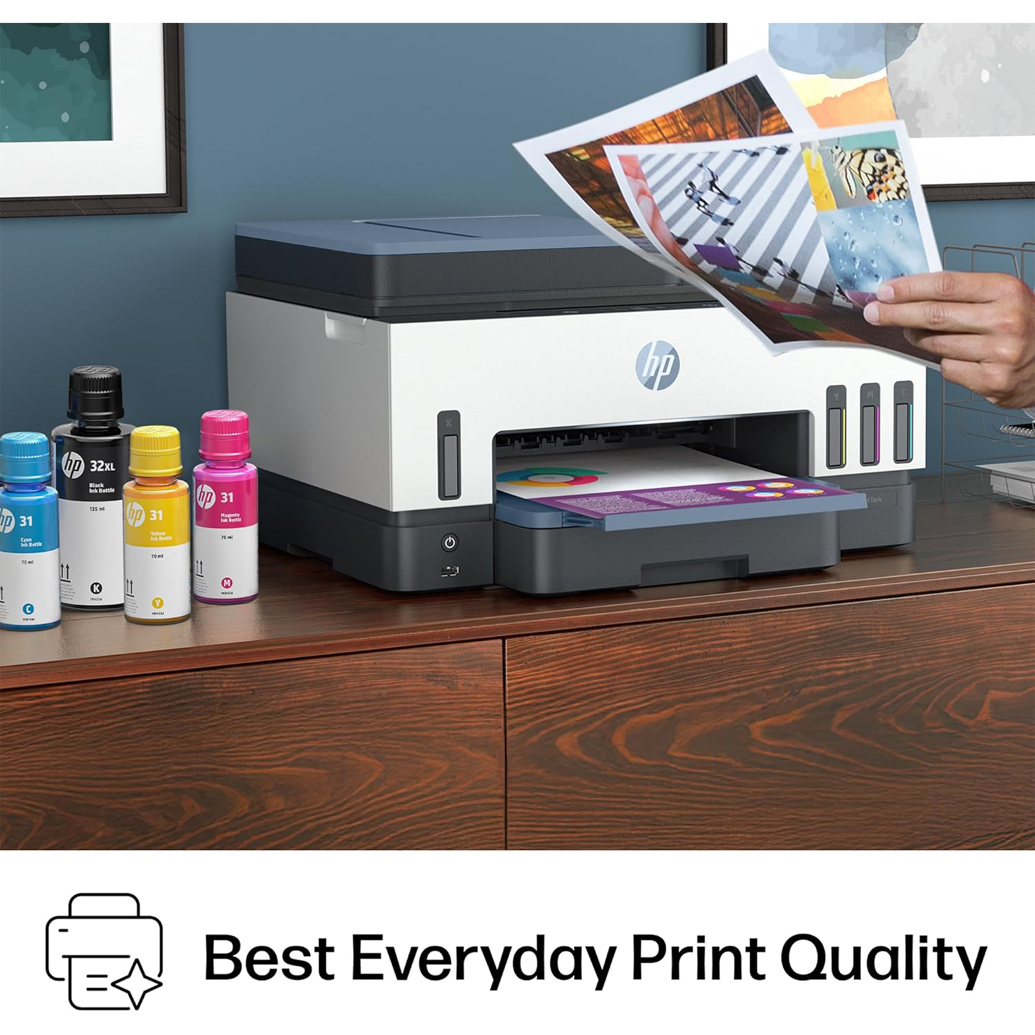 | Compatible Cartridge | HP 32XL 135-ml Black bottle (~6000 pages), HP 31 70-ml Cyan bottle (~8000 pages), HP 31 70-ml Magenta bottle (~8000 pages), HP 31 70-ml Yellow bottle (~8000 pages) |